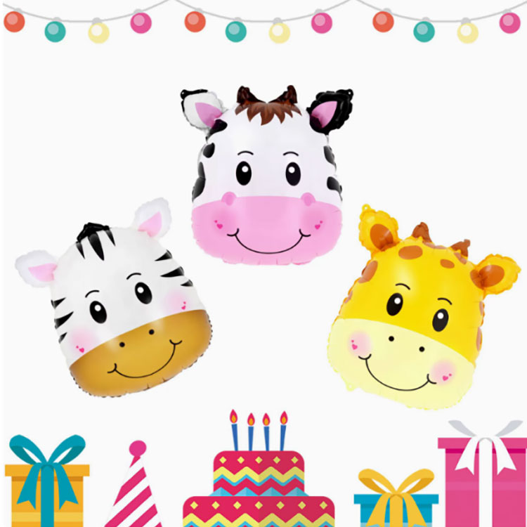 Цртан балон со фолија за глава на животно користи технологија за печатење со висока дефиниција, што резултира со живописни бои и ја обнови симпатичната животинска слика. Тие содржат различни животни како што се гумени патки, панди, жирафи, лисици, слонови, зебри и зајаци, кои се грижат за различни теми.