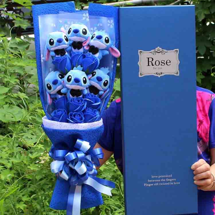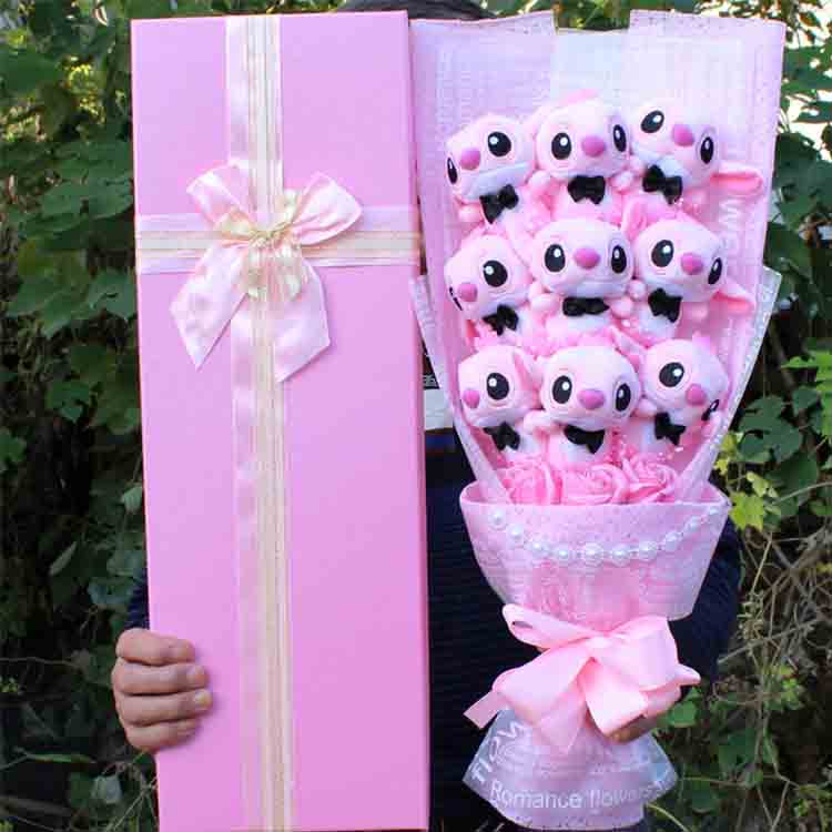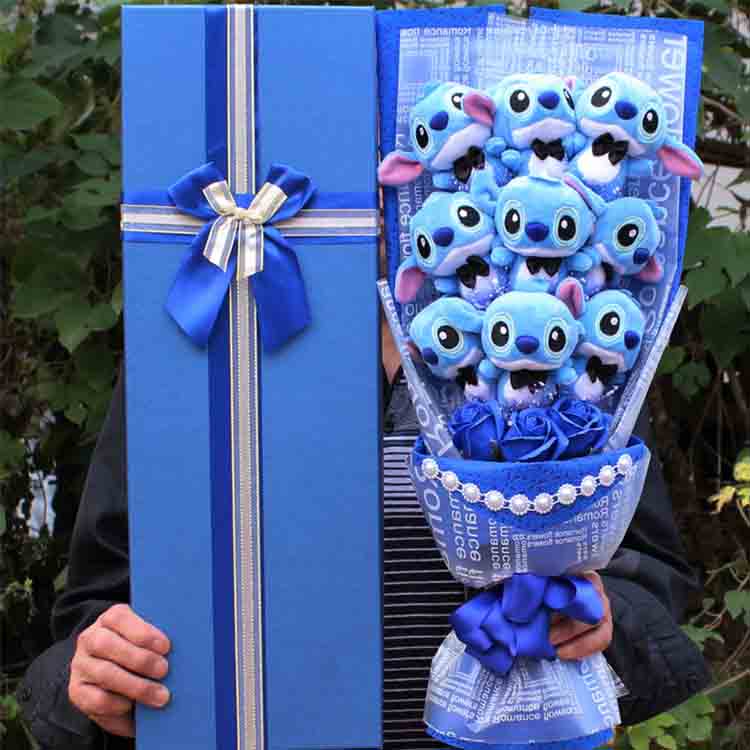 Овој симпатичен букет со цртани филмови од Newshine® има минијатурни карактери со бод во розова или сина боја, со хартија за завиткување и надворешна кутија што одговара. Придружните симулирани цвеќиња исто така ја надополнуваат целокупната шема на бои. Совршено е за изненадувања за роденден, честитки за одмор и реквизити за фотографии.