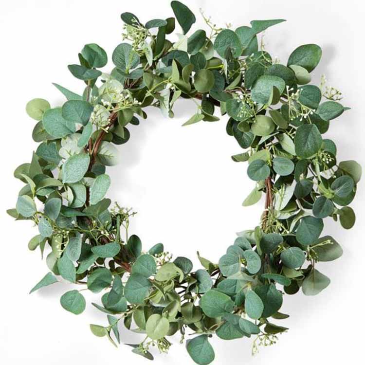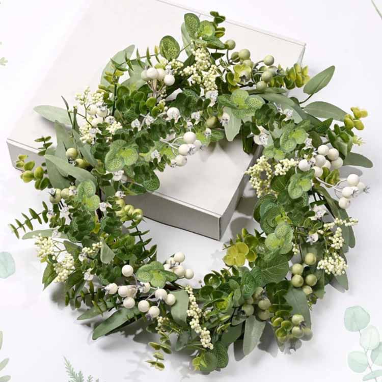 Украсната венец содржи лисја како главен елемент, со различни стилови инкрустирани со различни цвеќиња како украси, а целокупната форма е кружна. Вените на листовите се јасно видливи, создавајќи реалистичен ефект. Може да издржи ултравиолетово зрачење и нема да избледи. Тоа е врвен избор за украсување на предниот дел од куќата или каминот за време на Божиќ.