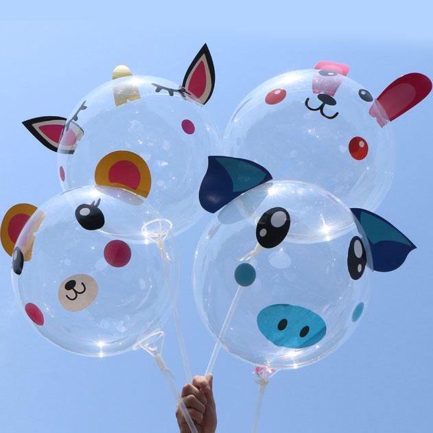 Еден сет вклучува: едно парче проѕирен бобо балон од 20 инчи, 3D налепница за животни, запечатувач, пластична лента за поддршка од 70 см и шарена LED светилка.