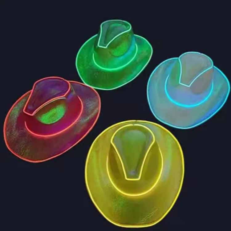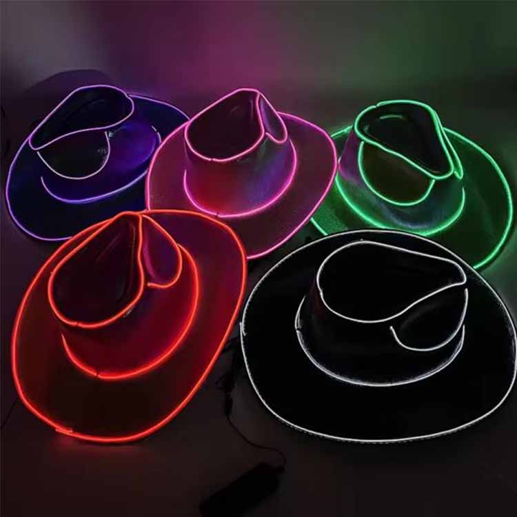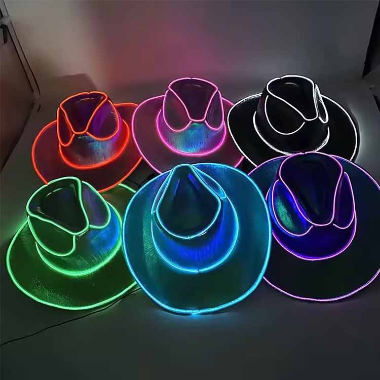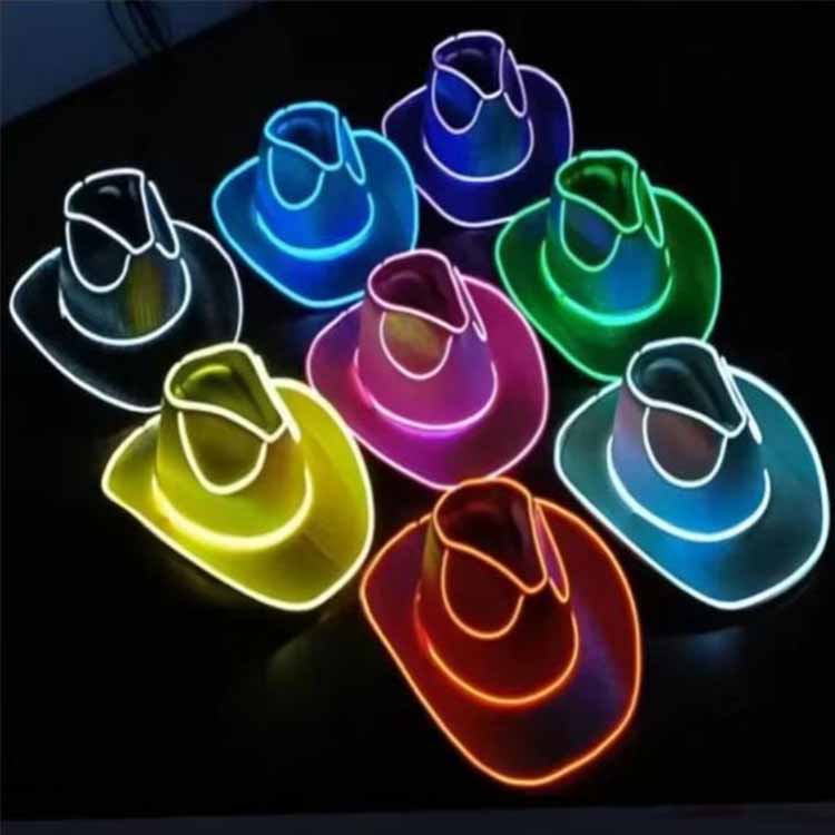 Оваа LED флуоресцентна шарена капа е лесна за употреба и може лесно да се инсталира за само 5 минути. Едноставно инсталирајте две AA батерии, вклучете го прекинувачот и уживајте во забавата на осветлената каубојска шапка.