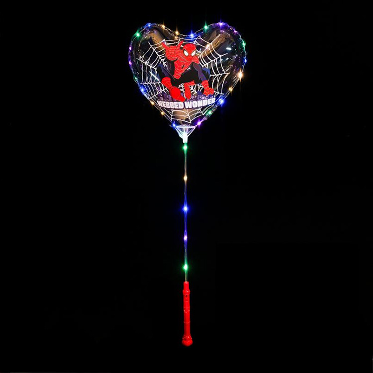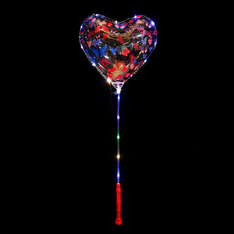 Често комбинираме балони Bobo печатени во облик на срце со рачки или LED светилници. Можете да ја изберете бојата на светлината што ви треба.
