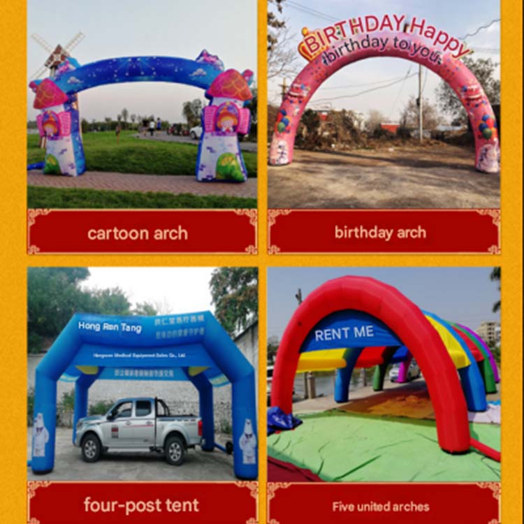 Направени од трајни материјали и достапни во најразлични форми и бои, овие надуени лакови брзо се надувуваат со пумпа и доаѓаат со вреќи со песок и јажиња за лесна инсталација. Тие можат да бидат отпечатени на големи знаци или простори за настани и се еднократно и економични. Тие се совршени за големи отвори, изложби, училишни настани и забави.