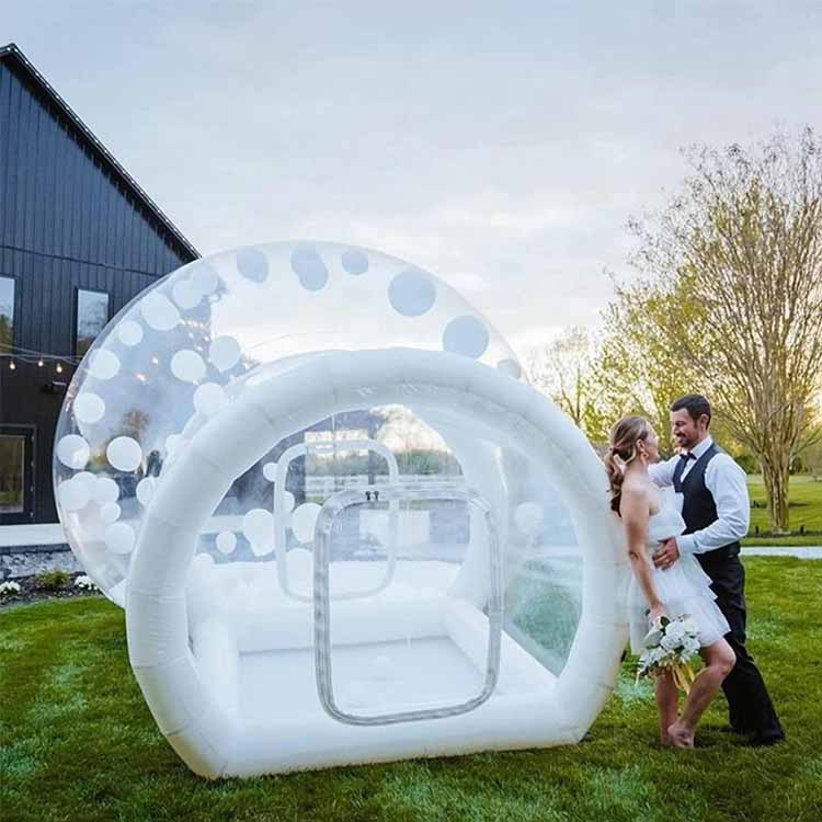 Производителот на newshine® обезбедува најразличниКуќи на меурчиња за надувувањеда се задоволат различни потреби. Нашите куќи за надувување се достапни во најразлични големини, вклучувајќи 2,2 милиони, 3М, 3,5м, 4м и 5мКуќи на меурчиња. Различни дијаметри се погодни за различни големини на вселената и сценарија за употреба. На пример, куќата на меурчиња од 2.2 милиони е мала и исклучителна и може да се користи како простор за лична медитација или уникатен штанд за прикази на мал бизнис; Шаторот за надувување на меурчиња од 3 милиони 3,5 милиони има релативно простран простор, кој е погоден за создавање топла област за одмор на отворено за романтично попладневно чај, или сместен во сценско место како специјално место за туристите да направат кратка пауза и да уживаат во околната убавина; Големата единечна куќа со меурчиња од 4 милиони метри може да се претвори во мала просторија за состаноци на отворено или партиски простор за да се сместат повеќе луѓе за заеднички активности за да се задоволат потребите на деловните преговори или собирите на пријатели.