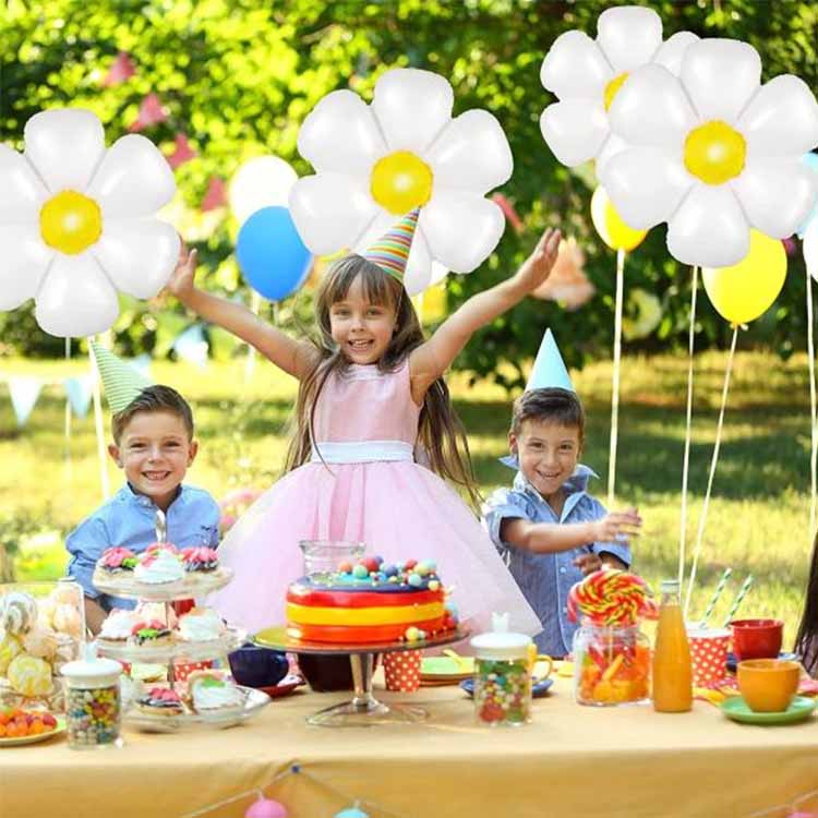 Прослави на фестивалот: На Денот на вineубените, Денот на мајката, Денот на децата, Божиќ и други фестивали, балоните на Дејзи фолија, исто така, можат да послужат како украси, донесувајќи весела атмосфера на фестивалите. На пример, на Денот на вineубените, loversубовниците можат да користат розов балон со маргаритка за да украсуваат на Денот на вineубените, а на Денот на децата, можете да ставите шарен балон со маргаритка во градинка или забавен парк.