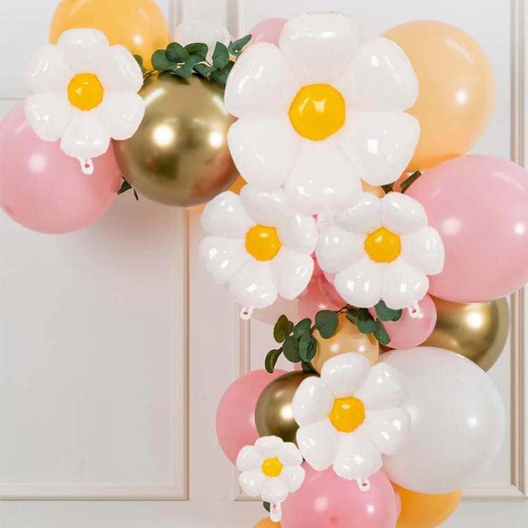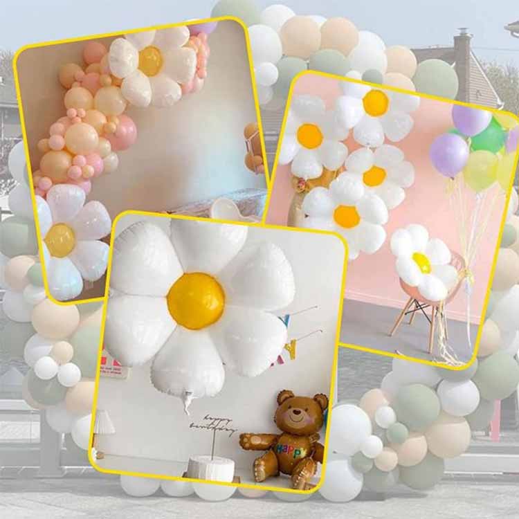 Изглед: Инспирацијата за создавање балони доаѓа од маргаритки. Општо, има шест ливчиња. Обликот и бојата на ливчињата можат да се прилагодат според шемата. Најчесто се користат се бели, розови, жолти, виолетови, итн., Со богати бои, кои можат да создадат романтична, свежа и весела атмосфера.