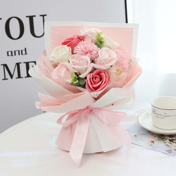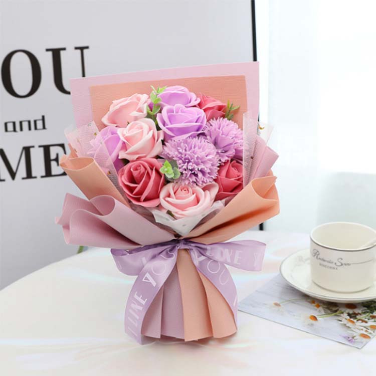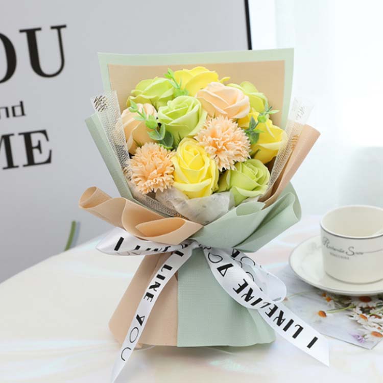 Букетот цвет од сапун содржи 11 шарени цветови и е украсен со лента. Погодни прилики вклучуваат: Исповед, благодарностд, подароци, сезонски прослави, деловна комуникација, доделување награди и комеморација, поволности на компанијата итн.