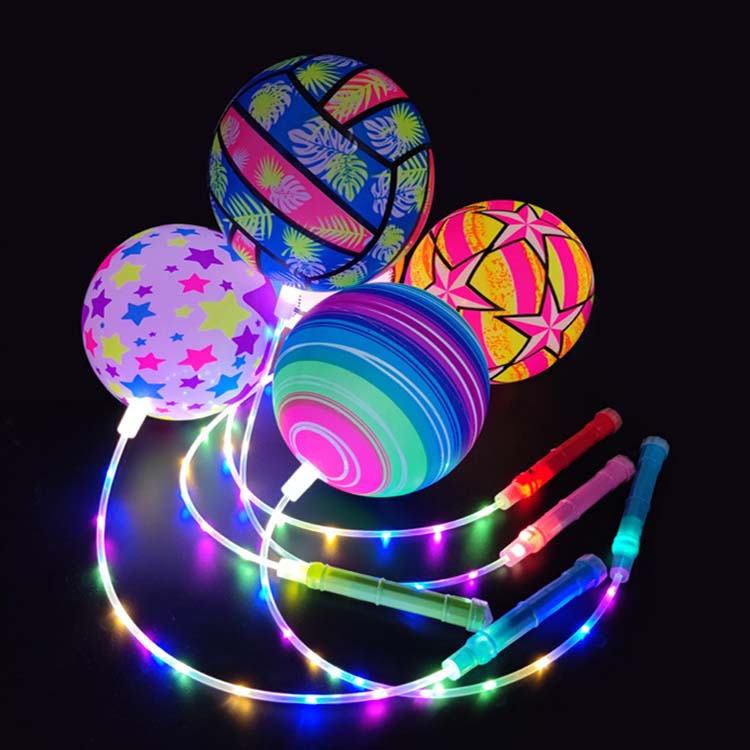 Стринг -жив топки со LED светла се прескокнувачка топка врзана за жицата, со LED светла вградени во внатрешноста или на површината. Кога се превртуваат, LED диодите испуштаат разнобојни светла кога отскокнувате, замавнувате или држите. Овие светла се видливи во темни околини.